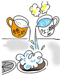 ※「重曹ペースト」・・重曹に少しづつ水を加えて湿らせ、そのまま練る。