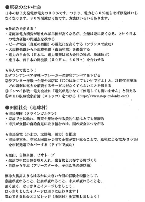 ● この日は、思いっきり、今回の大震災と原発のことに関して