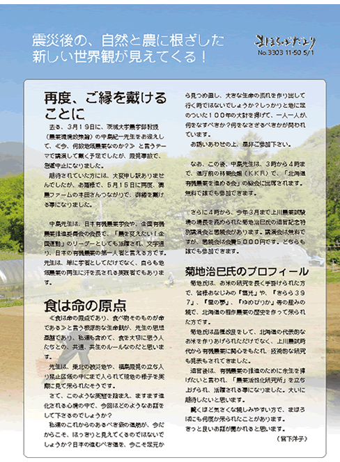 « ヘンプカープロジェクト会議in札幌 | メイン | 第4回 MAUKOPIRKA(まうこぴりか)音楽祭 »