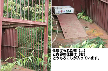 小さい方の檻は、アライ熊用ではないかと思います。ヘリコプターでも捜索していますが、一向に捕まりません。