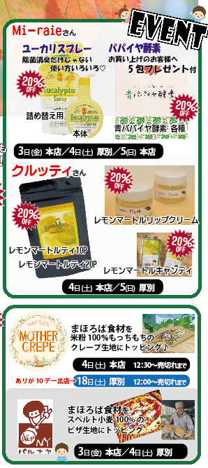 ※営業時間 26~30日:10ー18時 / 31日:10ー14時(本店)・10ー13時(厚別店)