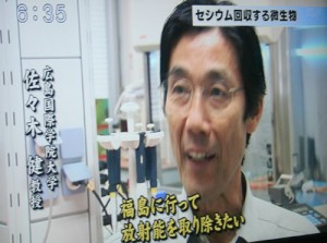 バイオ技術を活用した放射性物質の除去を研究している佐々木教授と、